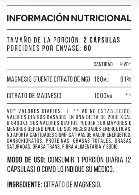 Suplemento Dietario a Base de Magnesio en cápsula. Libre de Gluten. Sin T.A.C.C.