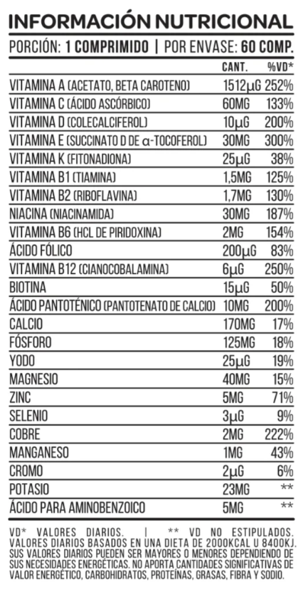 Suplemento dietario a base de vitaminas y minerales en comprimidos.